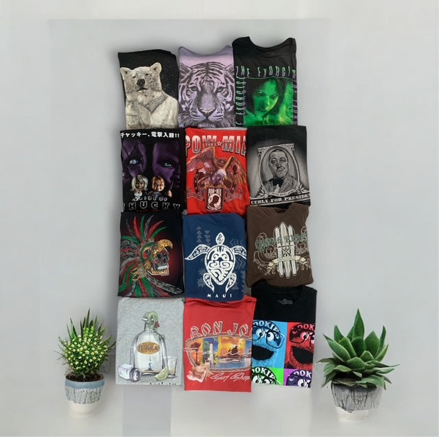 Our bundles include 150 high-quality graphic shirts, each carefully selected to ensure no significant stains or holes. All bundles are themed consistently for your convenience.